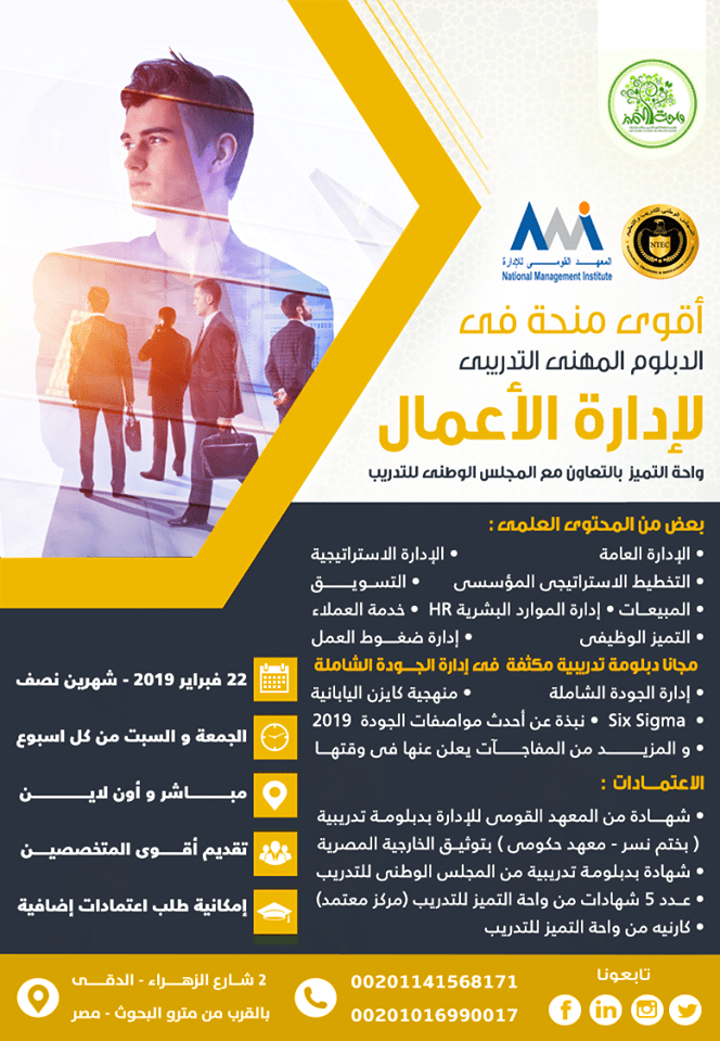أقوي منحة في إدارة الأعمال من واحة التميز BUSINESS ADMINISTRATION PLUS دبلومة فى الجودة الشاملة .. مجانااااا Total Quality Management ( FOR FREE ) من واحة التميز للتدريب بالتعاون مع المجلس الوطنى للتدريب و التعليم عايز أقوى تدريب احترافى قوى ومتخصص يفرق معاك فى مستقبلك ؟ و تقدر تشتغل وترتقى و تترقى بيه داخل وخارج مصر قطاع خاص وحكومى ؟ فى تخصص إدارة الأعمال ؟ ومعاه دبلومة مجانية فى إدارة الجودة الشاملة دبلوم تدريبى معتمد من المعهد القومى لــلإدارة ( معهد حكومى – بختم النسر ) ؟ و كمان موثق خارجية مصرية ؟ وكمان معتمد من المجلس الوطنى للتدريب و التعليم وواحـــــة التميز للتدريب المدربون من النخب فى التخصص على مستوى الوطن العربى +++ A و التدريب مباشر و أونلاين عن بعد من أى مكان فى الكون ؟ و باشتراك مدعم وخصم خاص حتى 18 فبراير 2019 م و للمجموعات https://i.suar.me/vN5gm/l بادر بالحجز فالعدد محدود جدااا مباشر و أونلاين - البداية 22 فبراير 2019م - لمدة شهرين نصف - الجمعة و السبت بعض من المحتوى العلمى لدبلومة إدارة الأعمال : - الإدارة العامة - الإدارة الاستراتيجية - التخطيط الاستراتيجى المؤسسى - التســويق - المبيعـــات - إدارة الموارد البشرية HR - خدمة العملاء - التميز الوظيفى إدارة ضغوط العمل PLUS دبلومة تدريبية مكثفة في إدارة الجودة الشاملة. FOR FREE - إدارة الجودة الشاملة - منهجية كايزن اليابانية kaizen SixSigma - نبذة عن أحدث مواصفات الجودة UPDATED For 2018 - 2019 و المزيد من المفاجآت يعلن عنها فى وقتها الاعتمــــادات : - شهادة من المعهد القومى لــــــــلإدارة بدبلومة تدريبية ( بختم نسر - المعهد حكومى ) - بتوثيق الخارجية المصرية - شهادة بدبلومة تدريبية من المجلس الوطنى التدريب و التعليم - عدد 5 شهادات من واحة التميز للتدريب ( المركز معتمد من الجهاز المركزى للتنظيم و الإدارة التابع لرئاسة مجلس الوزراء المصرى ) - كارنيه من واحة التميز للتدريب إمكانية طلب اعتمادات إضافية مصرية و دولية لمن يرغب . للإطـلاع على برامجنا برجاء الضغط الرابط التالى: http://cutt.us/yPAHA للتواصل معنا عبر الرسائل البيدج الرئيسية لواحة التميز برجاء الضغط على الرابط التالى https://www.facebook.com/WahaELTamyooz/ للتواصل : 00201141568171 - 00201016990017 متوفر واتساب و فايبر العنوان : 2 شارع الزهراء الدقى بالقرب من مترو البحوث - مصر خصم خصم خصم متاح الانضمام و الحجز فى أقوى منح مدعمة الماجستير المهنى فى الصحة النفسية ) و المنحة الشاملة لإعداد أخصائى التربية الخاصة واحة التميز للتدريب للمنح التالية التفاصيل بصور الإعلان : https://i.suar.me/oJ93x/l https://i.suar.me/7p2QG/l للتواصل معنا عبر الرسائل البيدج الرئيسية لواحة التميز برجاء الضغط على الرابط التالى https://www.facebook.com/WahaELTamyooz/ Website : wahaacademy.org للتواصل : 00201141568171 - 00201016990017 متوفر واتساب و فايبر العنوان : 2 شارع الزهراء الدقى بالقرب من مترو البحوث - مصر |